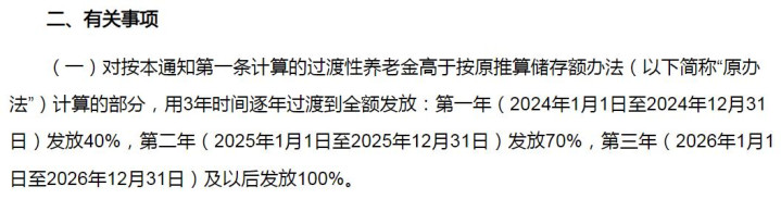 其次,退休时间要在2024年1月1日之前,因为这轮增发的原因是过渡性养老金的重新核算,而从2024年开始直接按照“新方法”核算了,也就不存在重新核算的基础。