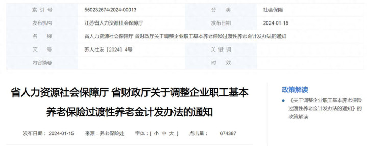 2024年1月,江苏人社厅、财政厅联合发布《关于调整企业职工基本养老保险过渡性养老金计发办法的通知》,对困扰当地多年的企业退休人员过渡性养老金问题予以回应。