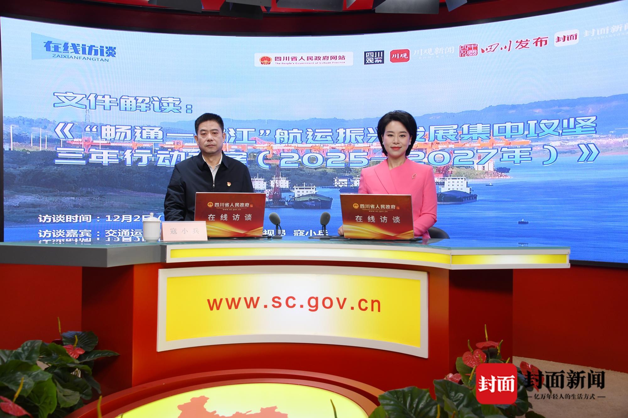 近日,四川省政府印发了《“畅通一条江”航运振兴发展集中攻坚三年行动方案(2025—2027年)》(以下简称《行动方案》)。12月2日,四川省交通运输厅总规划师、一级巡视员寇小兵做客四川省人民政府网站在线访谈栏目,对《行动方案》内容解读。他指出,四川将从五个方面重点开展航道建设,预计到2027年,四川打通航道“卡点”“堵点”将取得实质性突破。